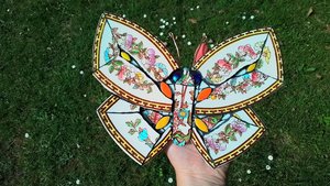 Our fabulous hand-cut recycled ceramic, Chinese Garden Butterfly is a whimsical delight in vintage brown and bright coloured floral patterned ceramics. Each butterfly is handcrafted out of just one small side plate and is decorated with added ceramic wing 'eye spots' to further jazz up our fantasy butterflies. All of our beautiful butterflies have copper wire antennae.