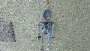 Our fabulous hand-crafted recycled stainless-steel medium sized Hanging Skeleton is a whimsical delight. This medium sized delightfully frightful skeleton mobile is made from up-cycled stainless-steel cutlery and would look fun suspended on display in your home or garden. The most adorable (all year round) Halloween decoration ever!