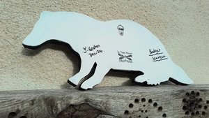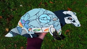 Our fabulous hand-cut recycled ceramic, Medium Autumn Leaves Badger is a whimsical delight in striking blacks, whites and greys with colourful vintage leaf patterned ceramics and leafy embellishments.