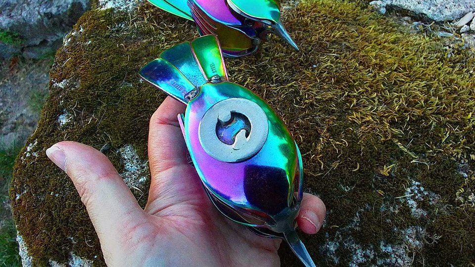 Our fabulous hand-crafted recycled metalic stainless-steel, cutlery Rainbow Dove is a whimsical colourful delight. I just love their beautiful metalic fanned tails. Limited edition, once they're gone they're gone!